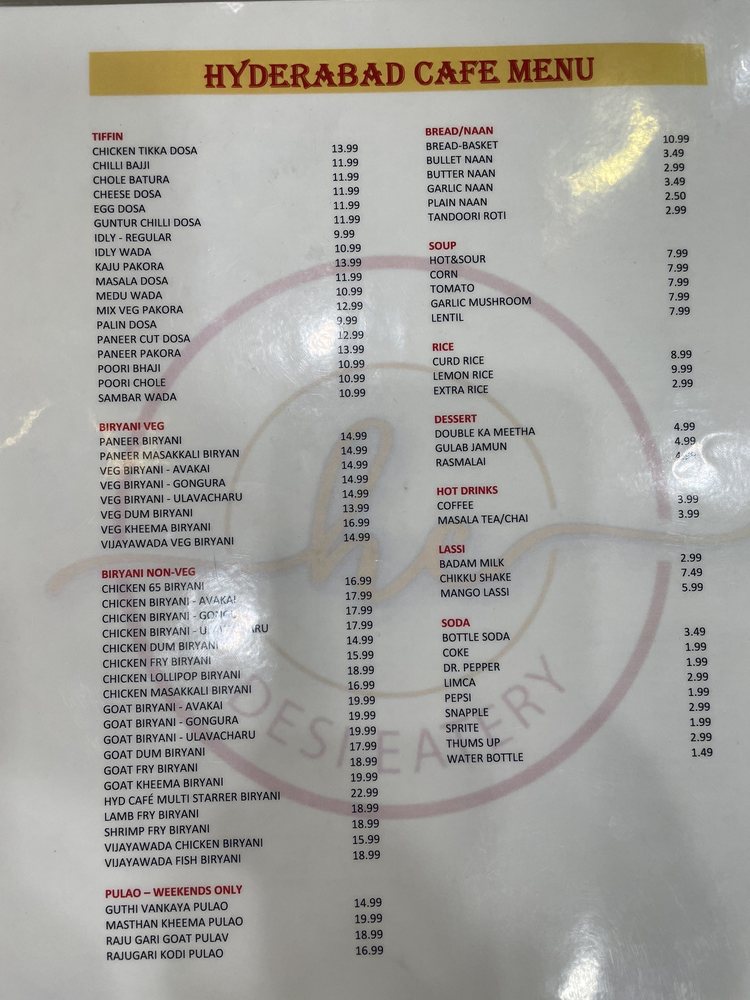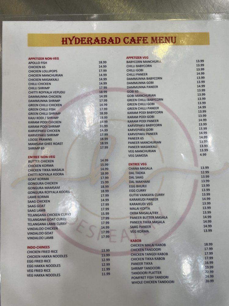 Hyderabad Cafe Menu (2025 Update)